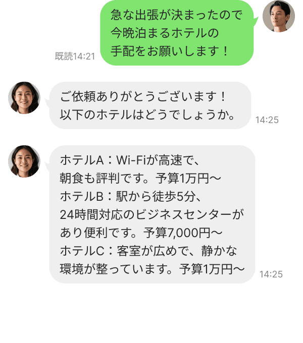 レストランの予約や出張の手配など、忙しい会員様サポートします。